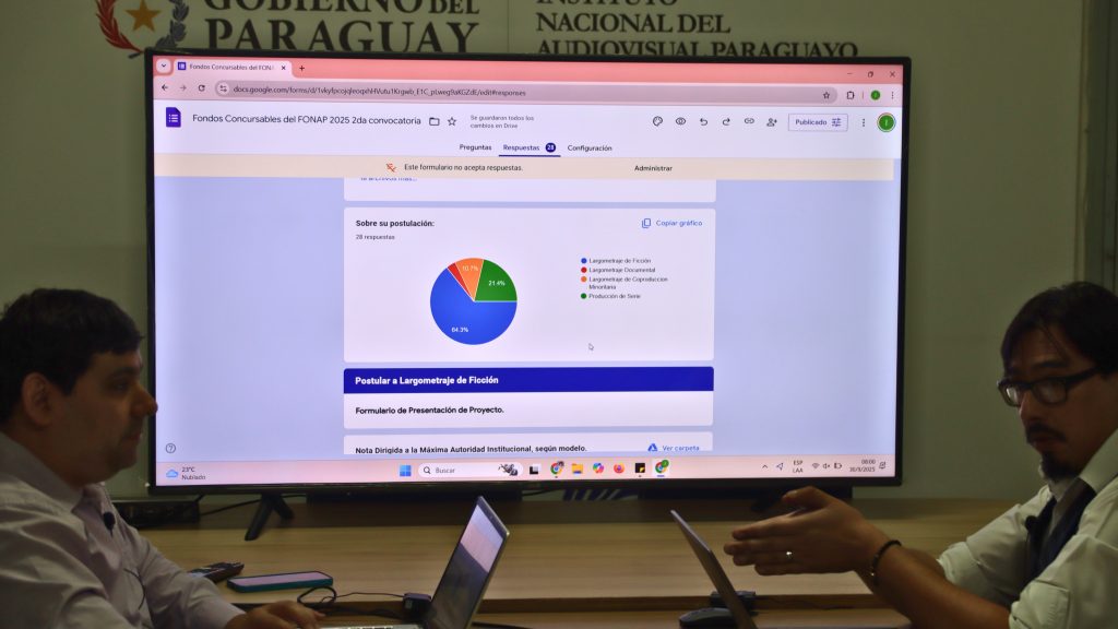 Los resultados reflejan un alto nivel de participación: 18 proyectos corresponden a largometraje de ficción, 6 a producción de serie, 3 a largometraje de coproducción minoritaria y 1 a largometraje documental. En cuanto a la distribución geográfica, el 67,9% de los postulantes proviene de Asunción, el 21,4% del Departamento Central, el 7,1% de Itapúa y el 3,6% de Alto Paraná, lo que ratifica la progresiva descentralización del sector audiovisual.