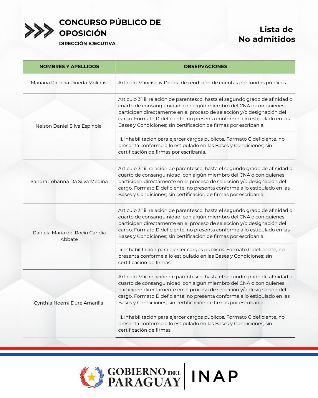 Para consultas el correo electrónico oficial: concursode@inap.gov.py